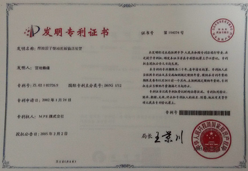M·P·E的“5SP停车系统”可以按照各土地形状,选择横型或竖型,而且可以向三轴方向移动,在前面空地上部,也可保证停车空间(本公司专利),从而有效地利用土地。而且,本系统的设计彻底的追求安全性,采用变换器控制,使得使用者在进入停车场时“升降机务必在车和人的下方”,由于在进行各种设计时,采用了摩擦系统(本公司专利)等尖端技术,取得了日本建筑大臣的9项认定,并且取得了8项专利。